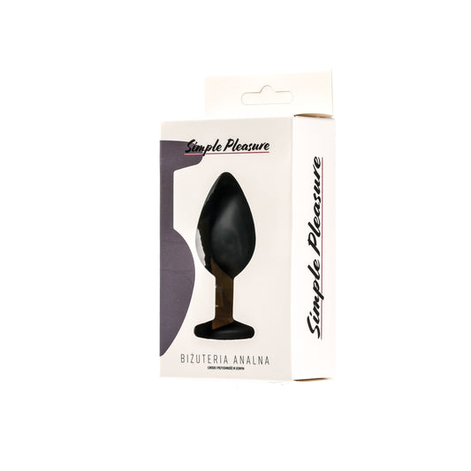Simple Pleasure korek analny silikonowy czarny rozmiar m kryształ ciemno różowy
