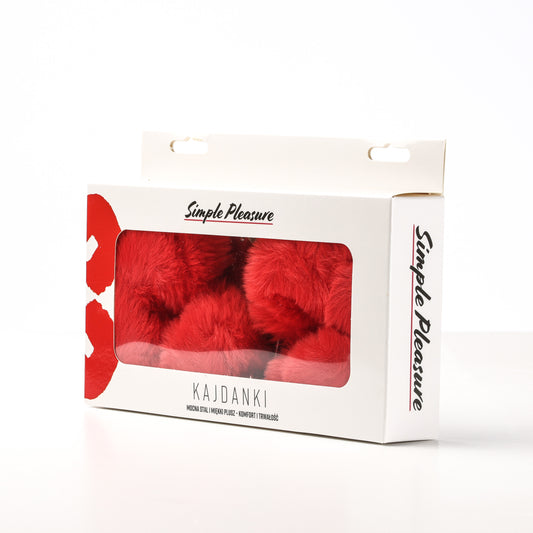 Simple Pleasure kajdanki erotyczne metalowe z futerkiem czerwone