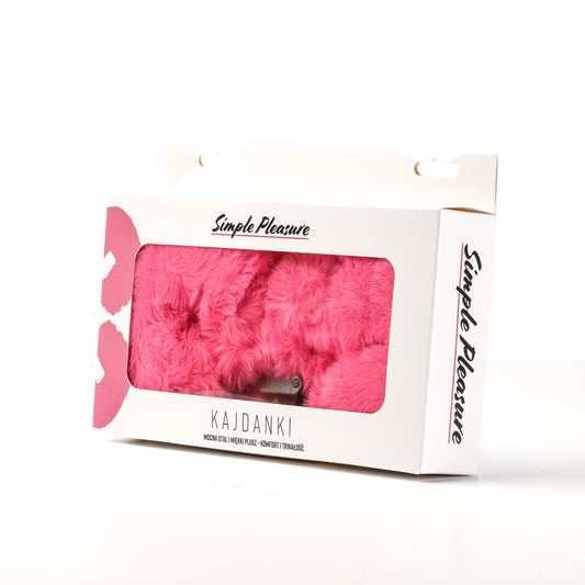 Simple Pleasure kajdanki erotyczne metalowe z futerkiem ciemno różowe